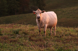I am also grateful for such moments as unexpected skies, and for the lone cow then standing there "in reflection"....and within reach.